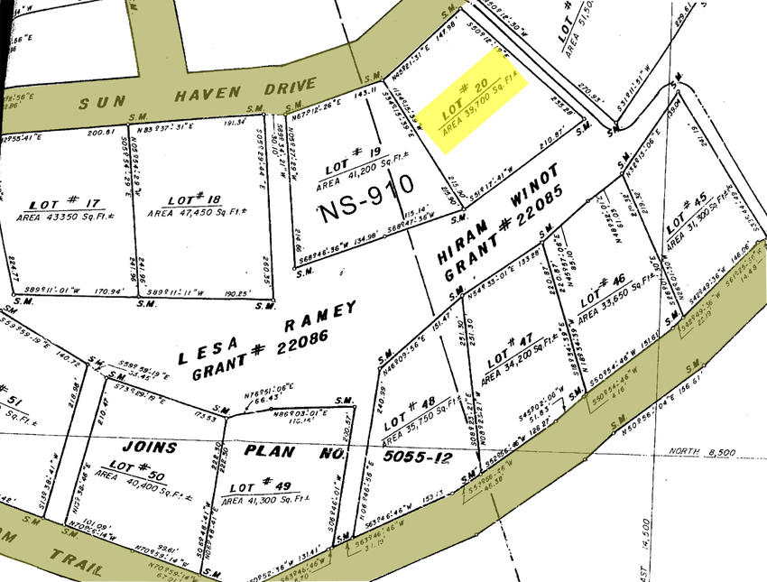 View of your land from Sunhaven Drive. Lot 20, Property Ref # NS-390 features 147.98 feet roadfront. Electricity and phone service is available