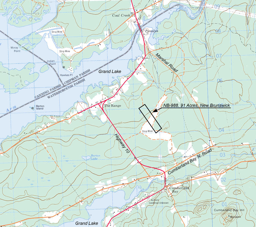 This 91 acre woodlot is located 15 kilometres (9.3 miles) south of Chipman, Queens County, in southern New Brunswick; accessed via woods roads running south and also east from highway 10. This is a prime area within equal distance (approximately 1 hour and 15 minutes) to the three largest cities in New Brunswick: Fredericton, Moncton and Saint John. Also within easy reach of the beautiful Grand Lake, the Salmon River, Canaan River, Saint John River and the magnificent Bay of Fundy.
