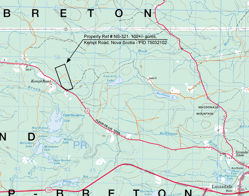 This 100 acre parcel of land, with excellent year round access via Highway 4 is ideally situated between the communities of Cleveland and Louisdale. Here you have ample room for a very private year round residence, vacation home, cottage, cabin, camp lot, or simply to invest in pristine Canadian land.