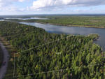 Lot 31 aerial view and shoreline from above Petite Barachois. In the distance is Lennox Passage and Isle Madame. Cascarette Island is in view just beyond the entrance to Shorefront Estates.