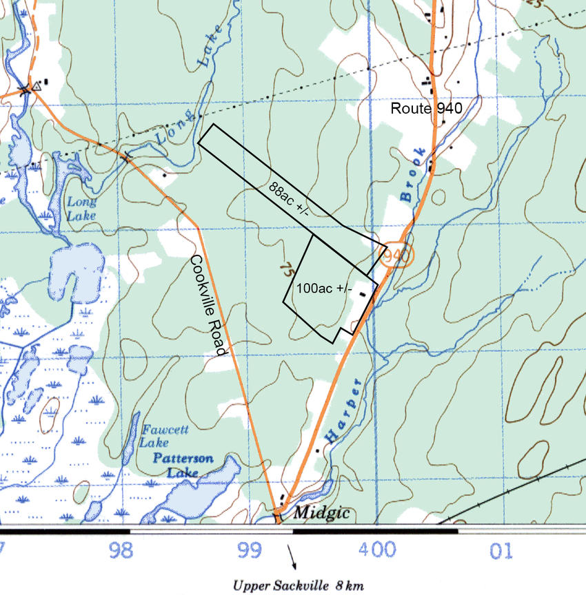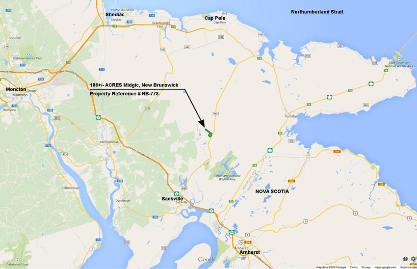 Land located along Route 940 in Midgic, in the County of Westmorland, Province of New Brunswick, Canada.