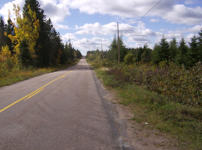 Looking South down Route 940. The land has right around 1475 feet (450 meters) of frontage on this lightly travelled, paved and well-maintained road.