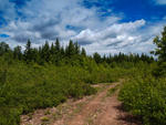 A good view of the 50 acre parcel, looking northeast. You can see the woods road through your land and stands of evergreen trees.