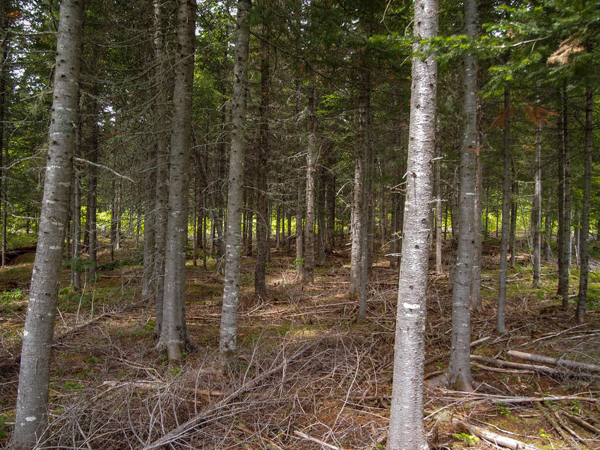 Topography of the land is generally flat, averaging 175 feet (53 meters) above sea level. Approximately 30 to 35 acres of the parcel was harvested for lumber 15 years ago, and is now showing strong re-growth of maple, birch, spruce and fir. The remaining area is very healthy stands of growing spruce and fir trees that have seen quality forest management over the years. The forest supports a diverse natural habitat of wildlife and birds.