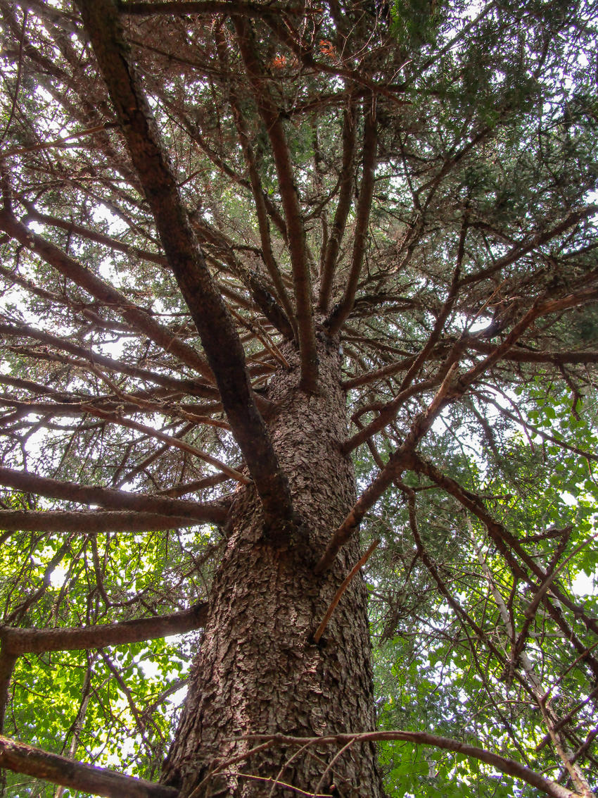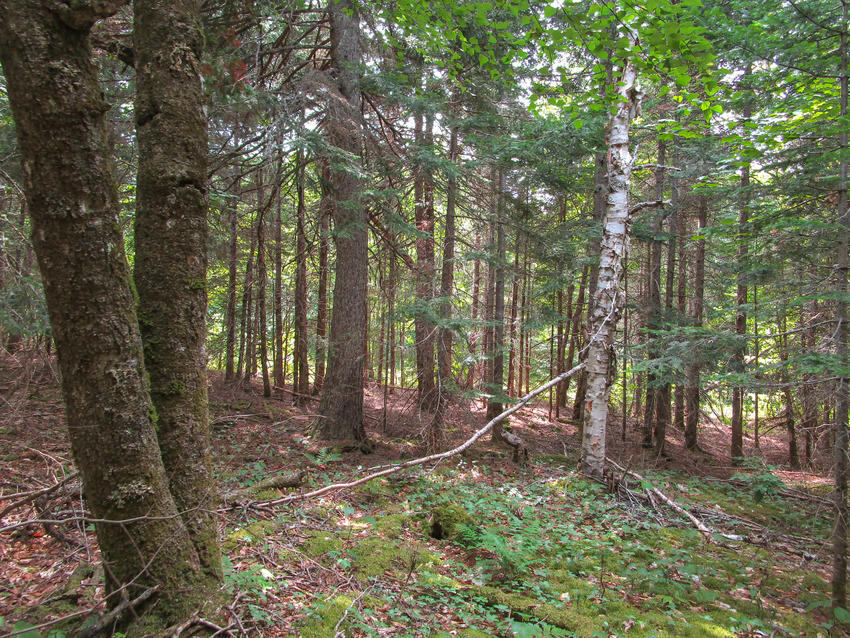 The land is beautifully treed throughout in mature evergreen trees, and you will also find a few deciduous trees - Birch and Maples. The ground is dry and well drained.