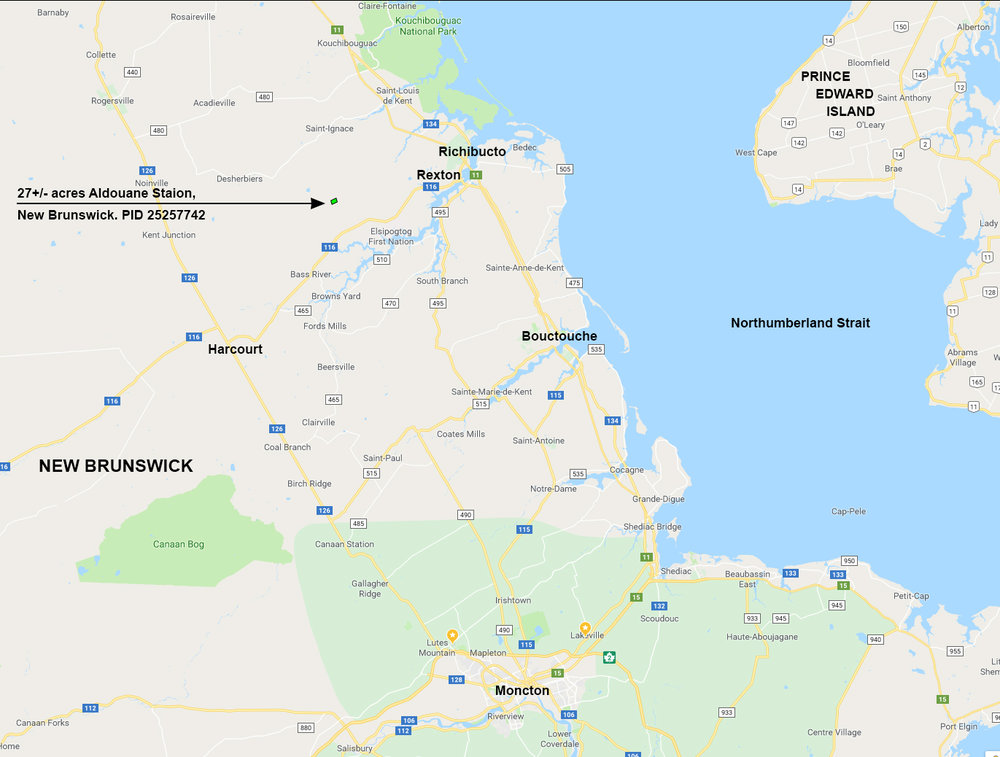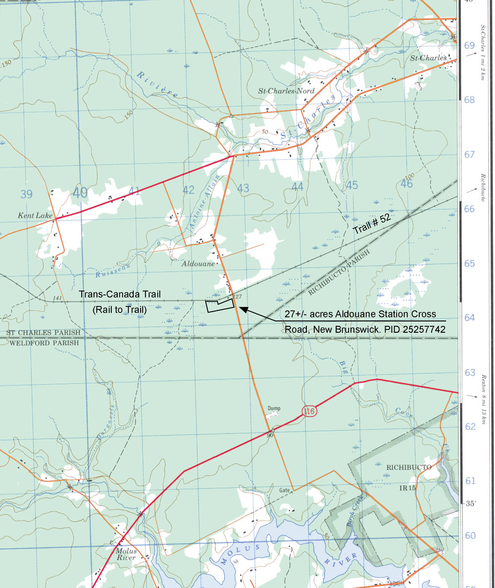 Land situate at Aldouane Station along the Aldouane Station Cross Road in the Parish of Saint Charles, in the County of Kent, and Province of New Brunswick, CANADA.