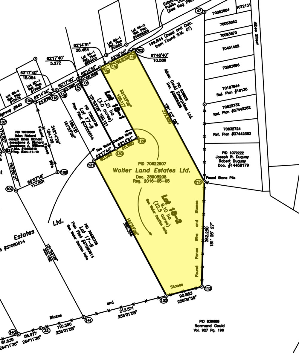 A land survey was recently completed. A registered Plan of Subdivision is available and corner posts identify the parcel’s physical location.