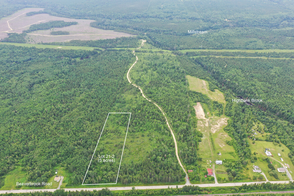 A drone photo outlining your 5-acres in Beaverbrook, NB.