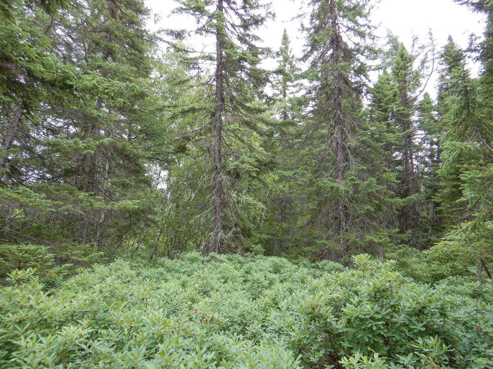 Roughly half of the property is densely treed in spruce, fir, birch, Tamarack, while the other half is more or less open ground with low lying vegetation and smaller evergreen trees. Topography of the land is more or less level throughout with an elevation of 100 meters above sea-level.