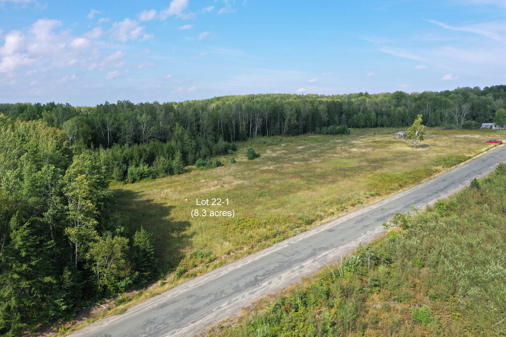 Drone picture showing Lot 22-1 outlined.