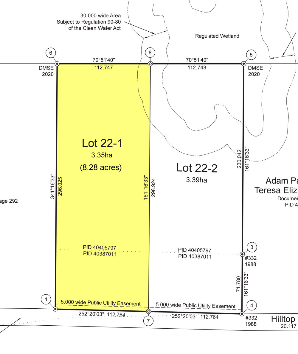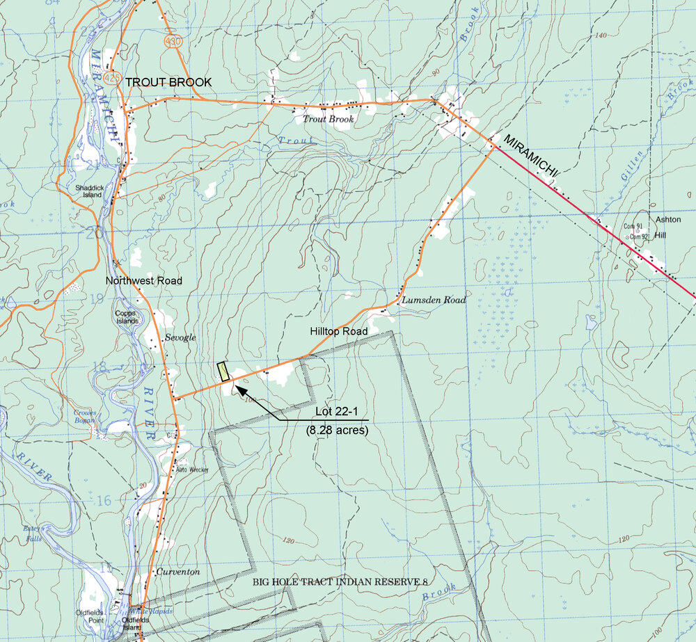 Land and situated on Hilltop Road in Hilltop, in the Parish of Northesk, in the County of Northumberland and Province of New Brunswick. Lot 22-1 on a plan of subdivision.