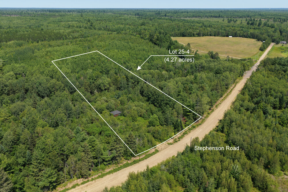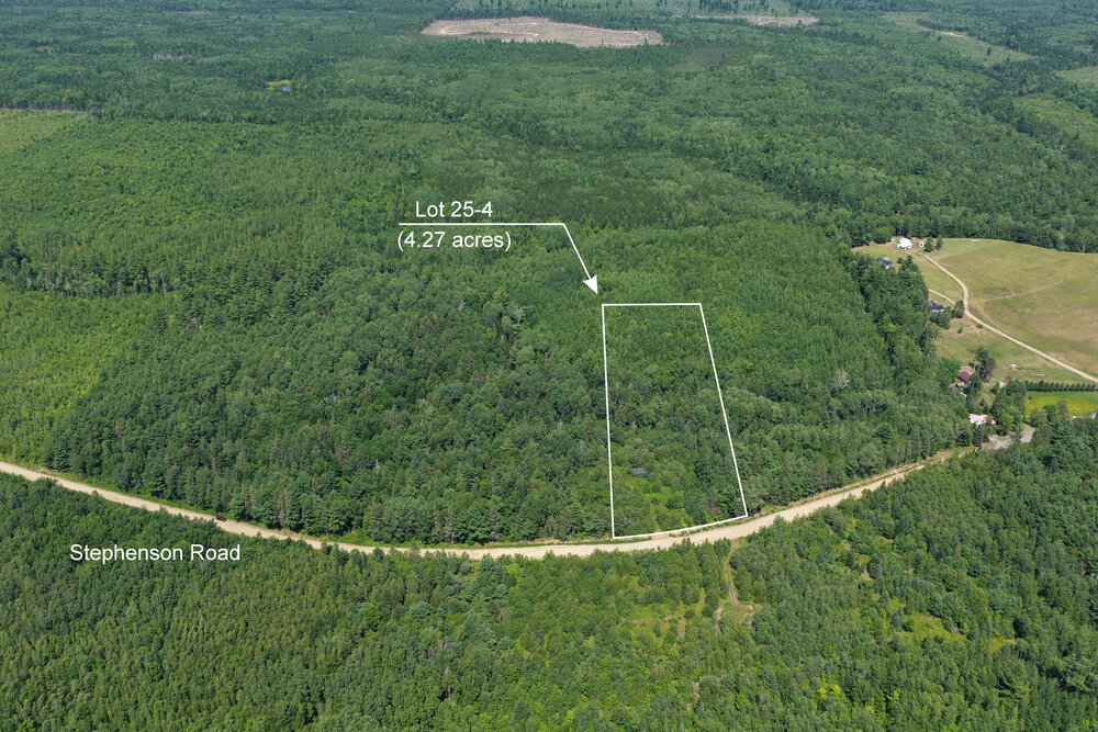 Drone view overlooking Lot 25-4, looking West along Stephenson Road.