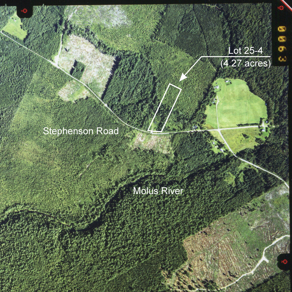 Your property is conveniently accessed by heading north on Stephenson Road from Highway 116 in Bass River. After crossing the Molus River at Dargavels Road, turn left and continue up Stephenson Road for about 250 meters to Lot 25-4 on the right. You’ll notice an existing driveway leading into the lot, the old house site, and — if you’re visiting in season — plenty of wild blueberries along driveway!