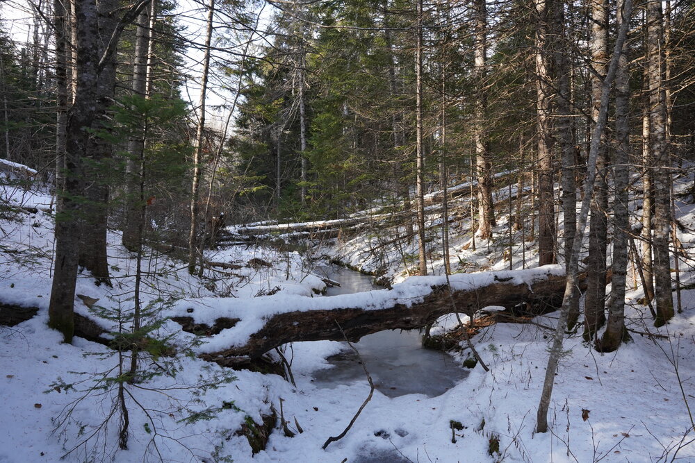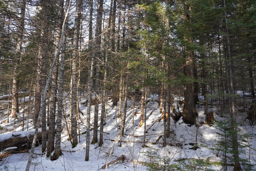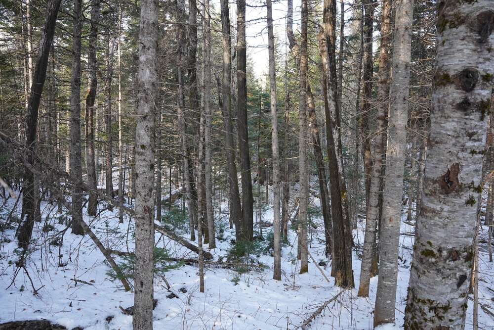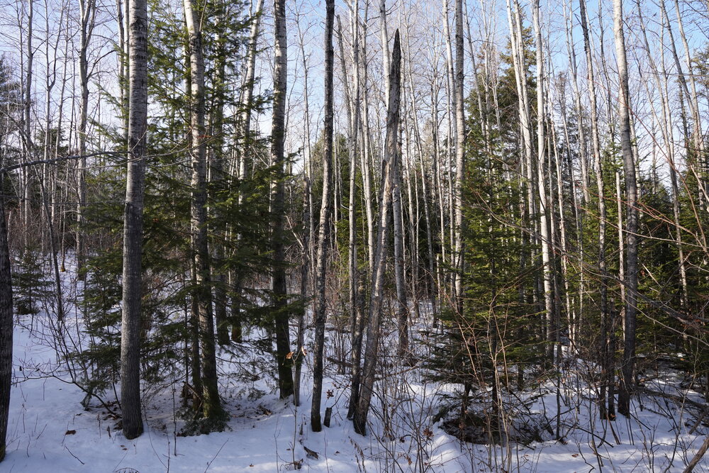 The property features a lovely mix of mature forest, open areas that are beginning to grow in, and sections that were selectively harvested between 2005 and 2010 and have since been pre-commercially thinned. The lot is easy to explore, and the recent survey makes identifying the boundary lines straightforward. You’ll find a healthy variety of trees, including Poplar, Birch, Maple, Fir, Spruce, Cedar, and a few Pine. The forest supports a rich and diverse habitat for wildlife and birds.