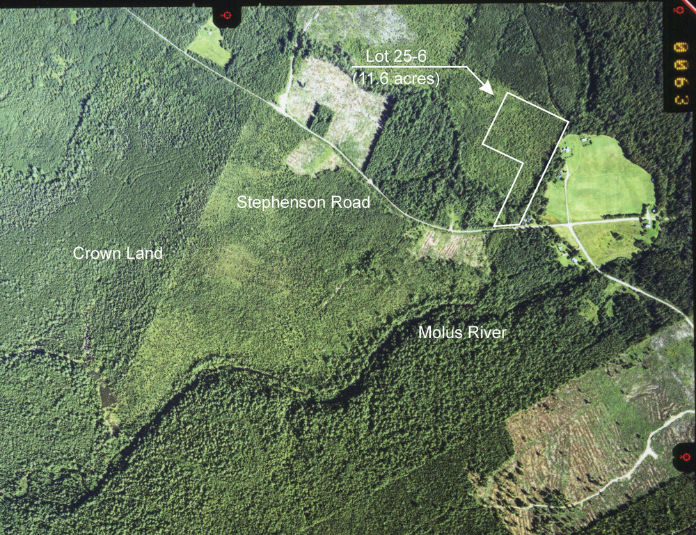 Your property is conveniently accessed by heading north on Stephenson Road from Highway 116 in Bass River. After crossing the Molus River at Dargavels Road, turn left and continue up Stephenson Road for about 200 meters to Lot 25-6 on the right.