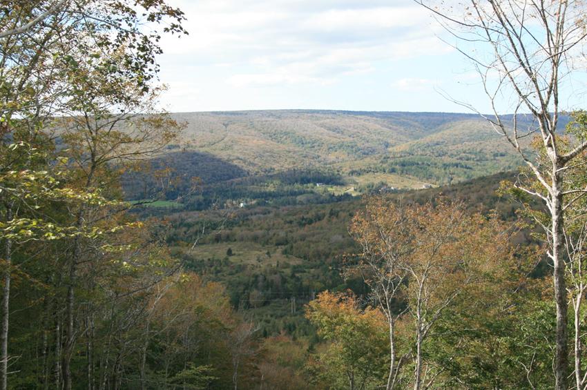 The many hillside springs and brooks on this property would be a good source of water. Right now, there is only a short driveway into the property near the southern boundary, which was formerly used as a wood road. However it is possible to construct a mountain road right up into the property as the neighbours have done. From high up in the property you have beautiful views of the surrounding countryside.