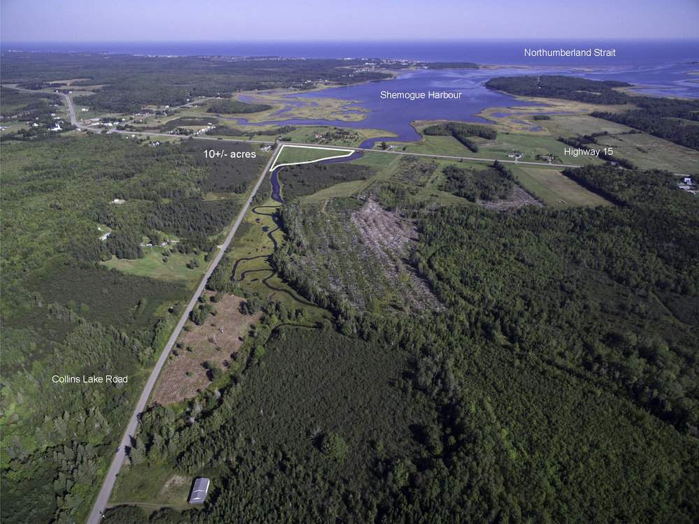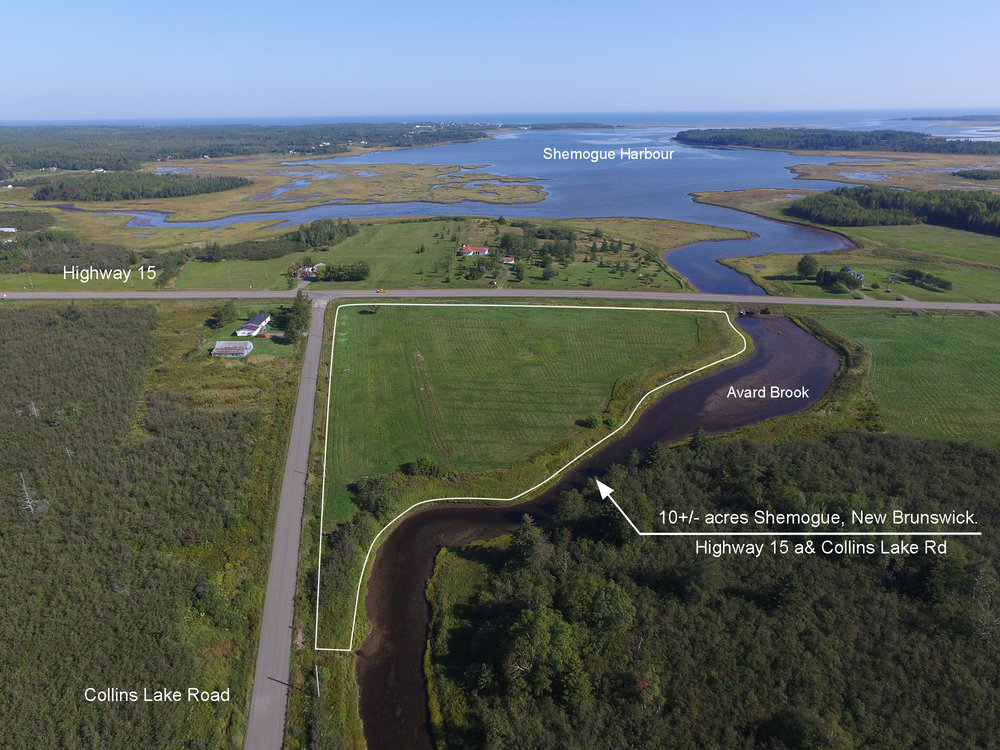 - Highway frontage along Highway 15 (Acadian Coastal Drive). - Road frontage along Collins Lake Road. - Power and telephone. - Frontage along Avard Brook. - Building site, farming, forestry use permitted. - Open lands and forested areas. - Coastal views of Shemogue Harbour and near sand beaches, fishing wharfs and local seafood restaurants. - Close to Collins Lake and Niles Lake. - Electricity and telephone in place. - Just over a kilometer from Highway 15 (Acadian Coastal Drive). - Close to communities and services - Cap Pele, Port Elgin, Shediac. - About 40 minutes from the City of Moncton and Moncton International Airport.