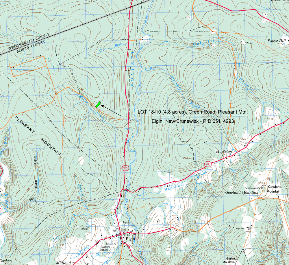 Land located along Green Road in Pleasant Mountain, in the Parish of Elgin, in the County of Albert, and Province of New Brunswick, Canada. Lot 18-10 on a registered Plan of Subdivision.