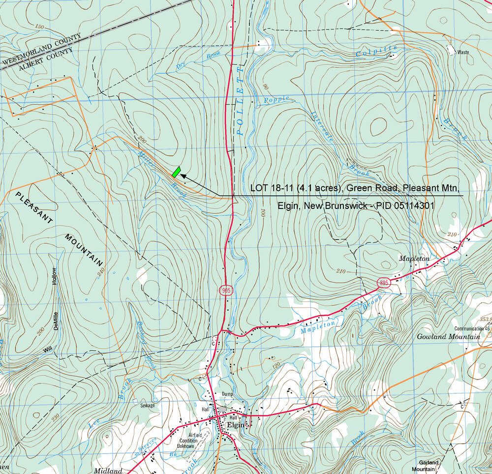 Land located along Green Road in Pleasant Mountain, in the Parish of Elgin, in the County of Albert, and Province of New Brunswick, Canada. Lot 18-11 on a registered Plan of Subdivision.