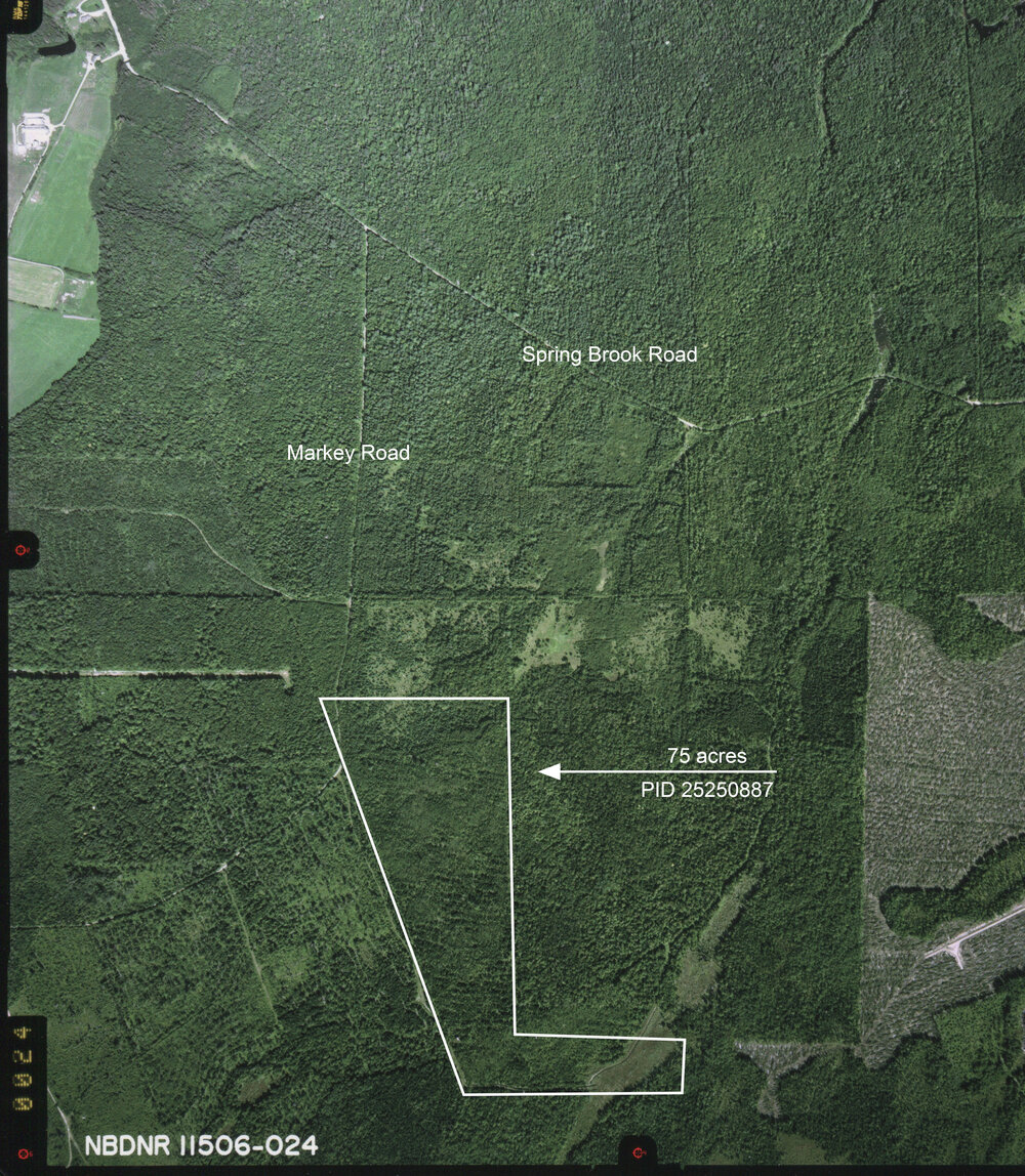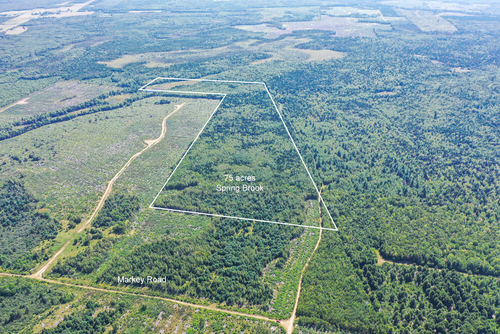 Getting here is easy. From the city of Moncton, take HWY 15 east towards Shediac, continuing north on HWY 11 to the town of Bouctouche. At Bouctouche follow the beautiful Bouctouche River west via HWY 515 past Saint-Marie-de-Kent, continuing north on HWY 495 for 17 kilometers (~14 minutes) past Saint-Fabien, Bastarache, to South Branch. At South Branch turn right onto Spring Brook Road and follow to Springbrook Farms. Continue past the farm for 700 meters to Markey Road on your right. Continue on Markey Road for 1.3 kilometers, or to the end of the road and the north end of your 75 acre woodland acreage! GPS coordinates available.