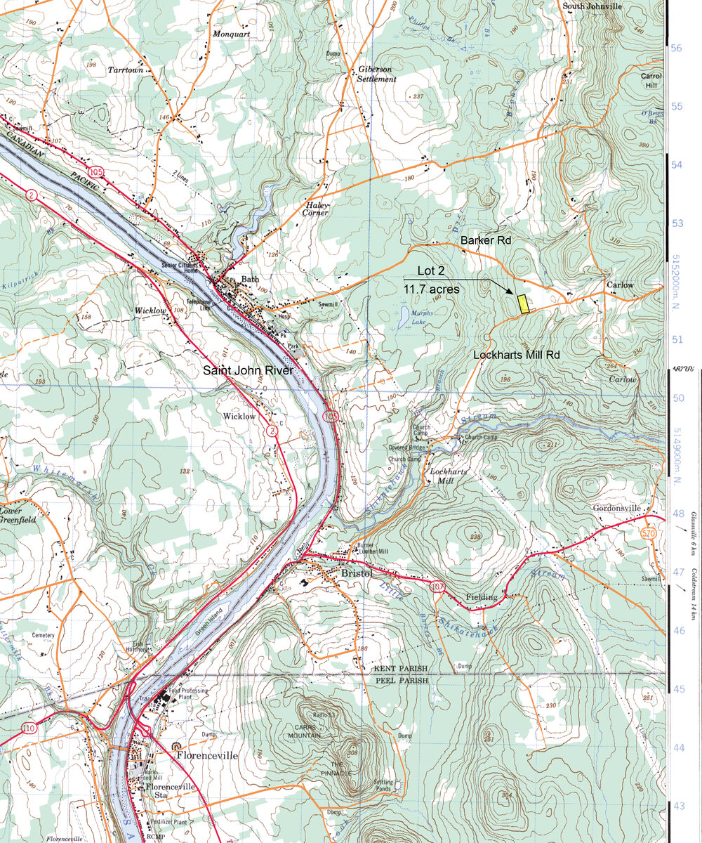 From your land via Lockharts Mill Road, and Barker Road, the village of Bath and the town of Florenceville-Bristol are just a 5 and 15 minute drive away ensuring you have easy access to most amenities including grocery stores, gas, post office, banking, schools, home hardware, coffee shops, restaurants, local medical clinic and other supplies.