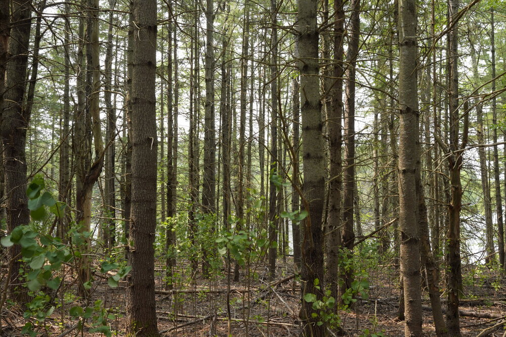 Your property is forested throughout in mature Spruce, Fir, White Pine, Poplar and Maples. An old rustic camp is situated within this area at the shore (see pictures) and holds little to no value.