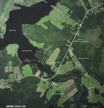 Drone view outlining Lot 4 on the Little Black River, with 204 feet of private shoreline.