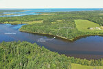 Drone view outlining Lot 4 on the Little Black River. Looking out towards the Black River and Bay du Vin.