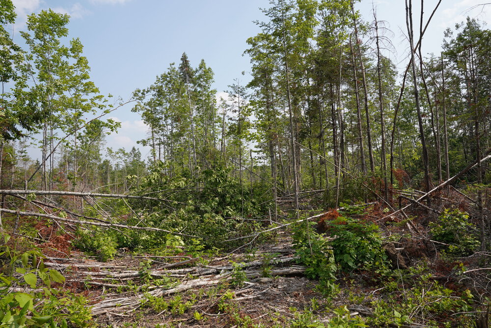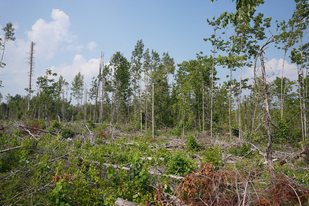 Lot 25-04 (4.3 acres). Picture taken towards the back line. While some debris is visible, healthy tree stands remain, and the area is already showing signs of natural regeneration.